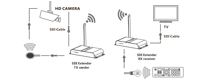 เครื่องส่ง-รับ สัญญาณ SDI แบบไร้สาย ได้ไกล 200 เมตร สนับสนุนความละเอียด 1080P มีฟังค์ชั่น IR-passback สนับสนุนการใช้งาน 1 transmitter ส่งสัญญาณไปยัง 3 receiver