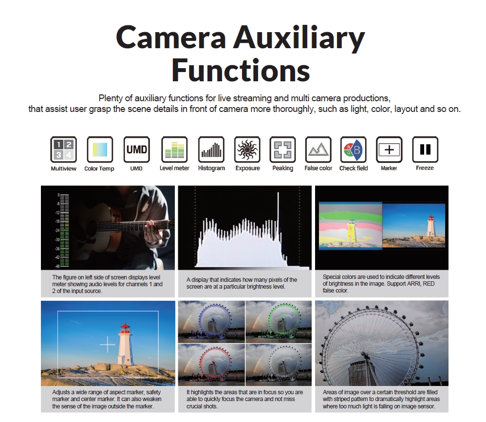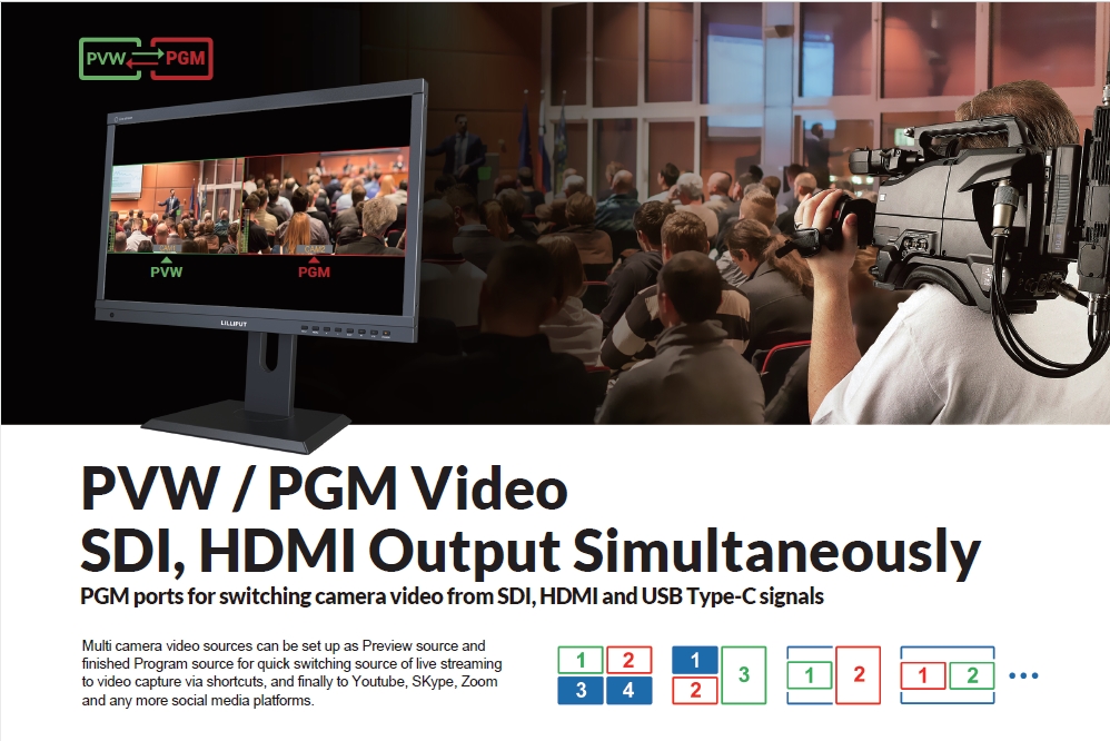 คุณภาพสูง 1080P ซึ่งทำให้ง่ายต่อการแสดงกล้องหลายตัวระดับมืออาชีพสำหรับการสตรีมสด มีแหล่งวิดีโอจากกล้องหลายตัวที่สามารถตั้งค่าเป็นแหล่งแสดงตัวอย่างและแหล่งที่มาของโปรแกรมที่เสร็จสิ้น สำหรับการสลับแหล่งที่มาของการสตรีมสดเป็นการจับภาพวิดีโออย่างรวดเร็ว และสุดท้ายไปยัง Youtube, Skype, Zoom และแพลตฟอร์มโซเชียลมีเดียอื่นๆ