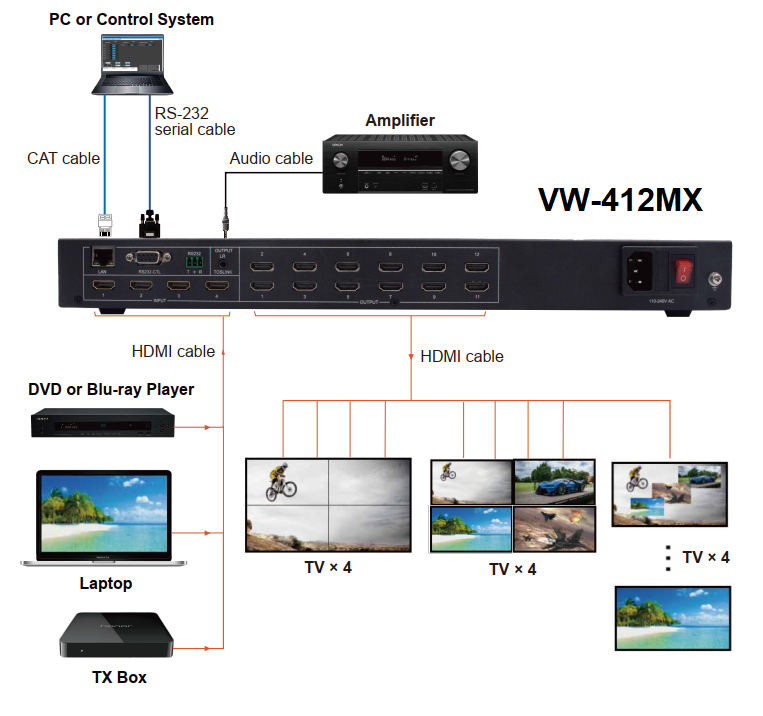 16x OUTPUT [HDMI Type A, 19-pin female]