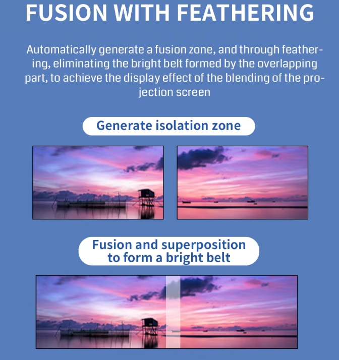 ฟังก์ชันแก้ไขภาพครบชุด: มาพร้อมฟีเจอร์สำคัญ เช่น การทำขอบภาพซ้อนอย่างนุ่มนวล (Feathering), การแก้ไขสี (Color Correction), และการแก้ไขรูปทรงเรขาคณิต (Geometric Correction)
